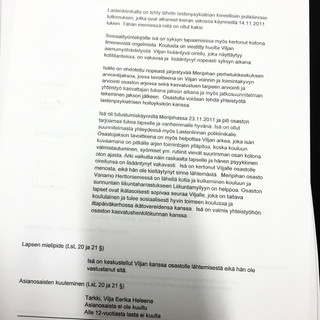 Lastensuojelun monimutkaiselta ulos näyttävät manööverit ovat sen kynsiin joutuneen vaikeaa avata ulkopuoliselle. Uhrina kokemus on vaikeaa sanoa ääneen, ne kynnen reijät ovat syvällä ja teot ovat uskomattoman raakaa toimea lasta ja hänen vanhempiaan kohtaan, sitä hyvää vanhempaa usein tuhotaan tahallaan, ei ainakaan aueta apuun yhdistäen lapsen toivetta olla haluamiensa läheisten kanssa.
